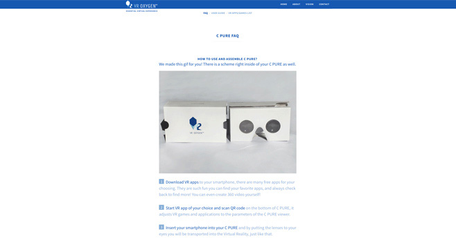 Locating all the sections' buttona on the landing page helped to avoid the confusion when people guessed what type of VR it is about. Having Android and Apple logos, as well as a cardboard viewer picture on the landing page provides an immediate explanation that it's mobile VR.